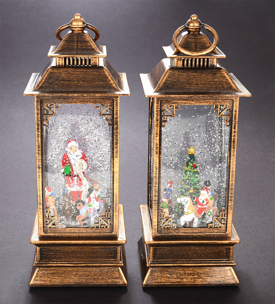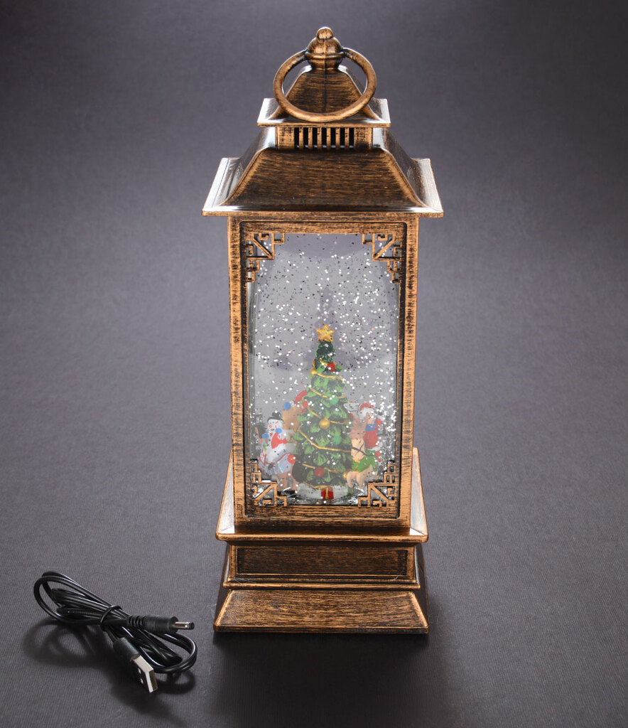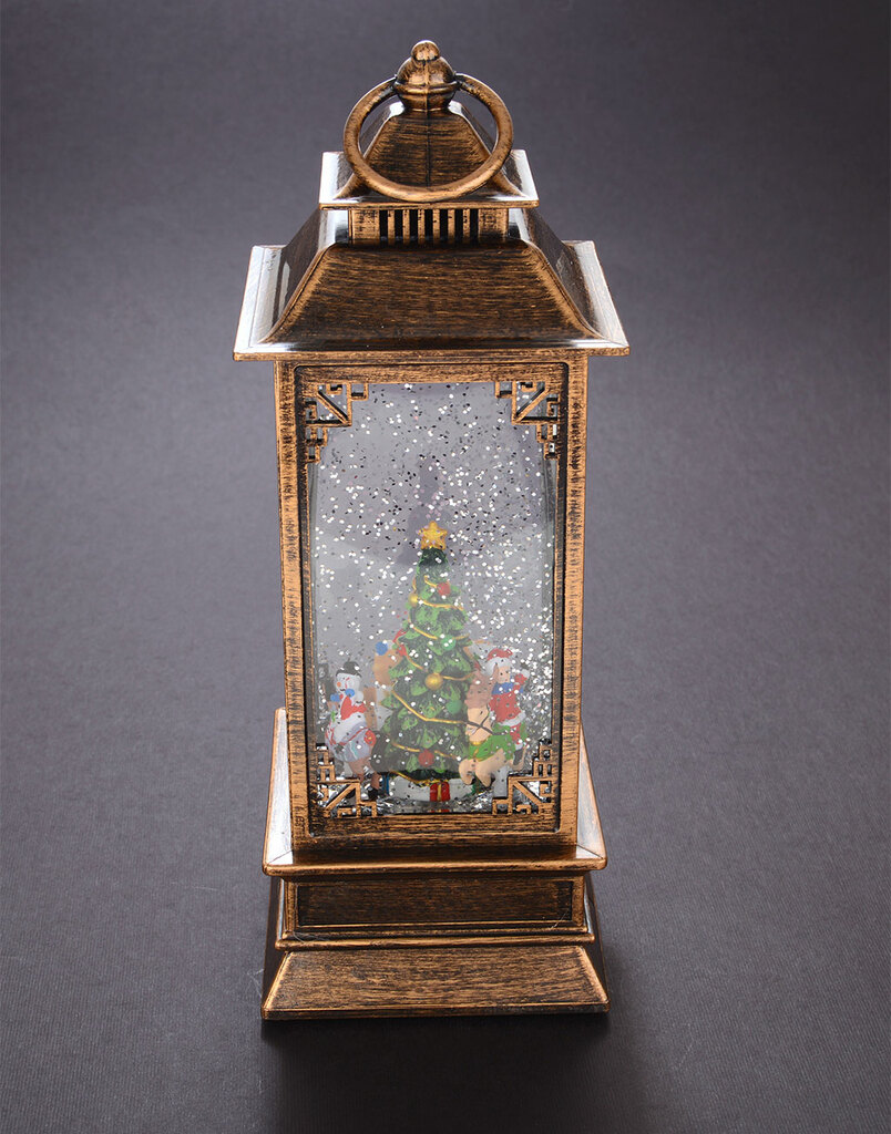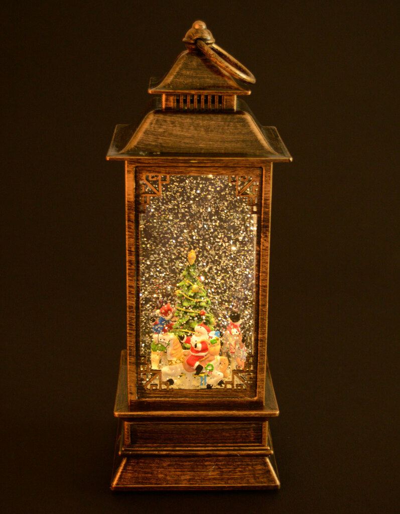 Декоративна фигурка с формата на фенер - светещо музикално преспапие с коледни мотиви.