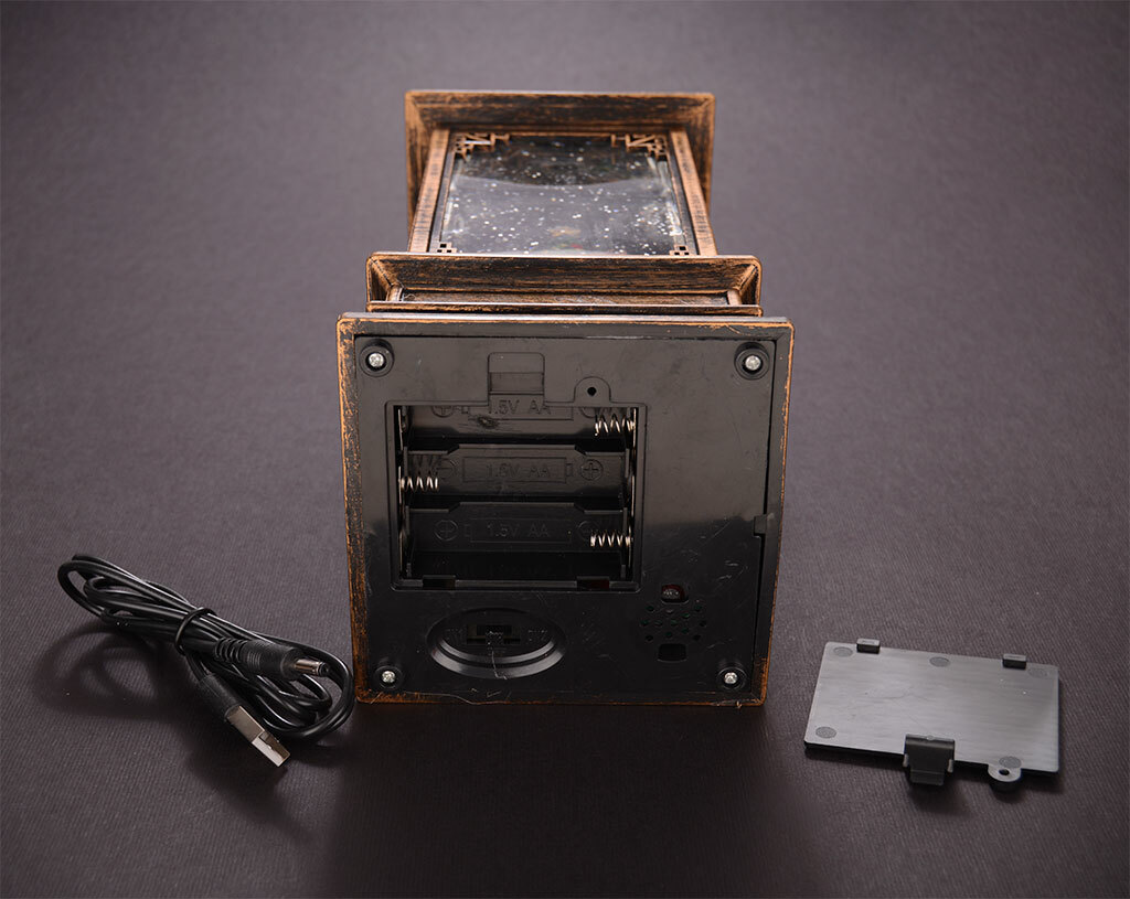 Работи с 3 броя батерии 2AA 1.5V или с кабел с USB накрайник.