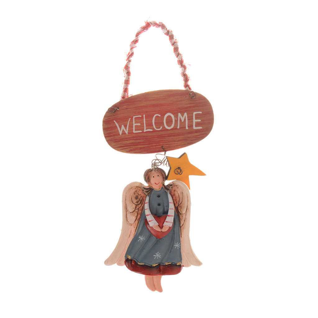 Декоративна фигурка за окачване във формата на ангел и табелка с надпис Welcome.