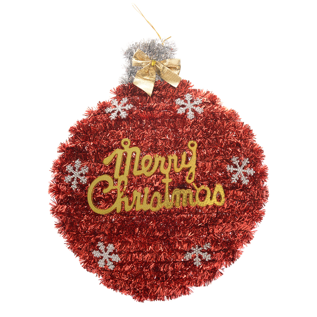 Коледна украса за окачване във формата на топка с надпис Merry Christmas.