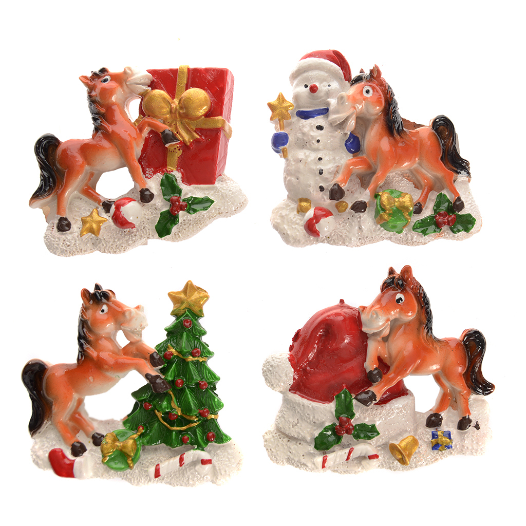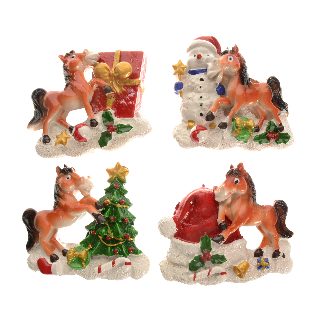 Декоративна магнитна фигурка във формата на конче с коледни мотиви.