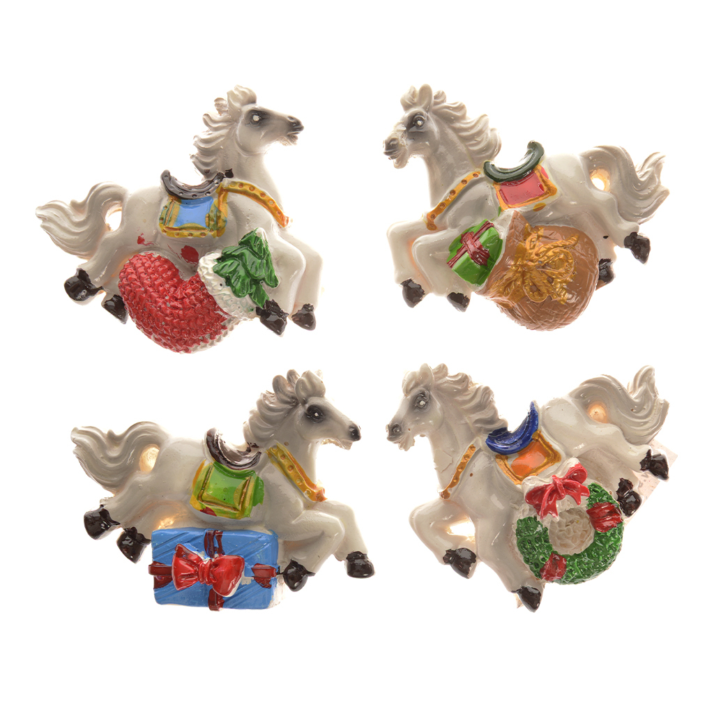 Декоративна магнитна фигурка във формата на конче с коледни мотиви.