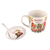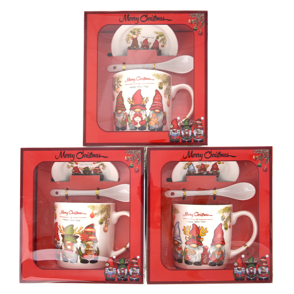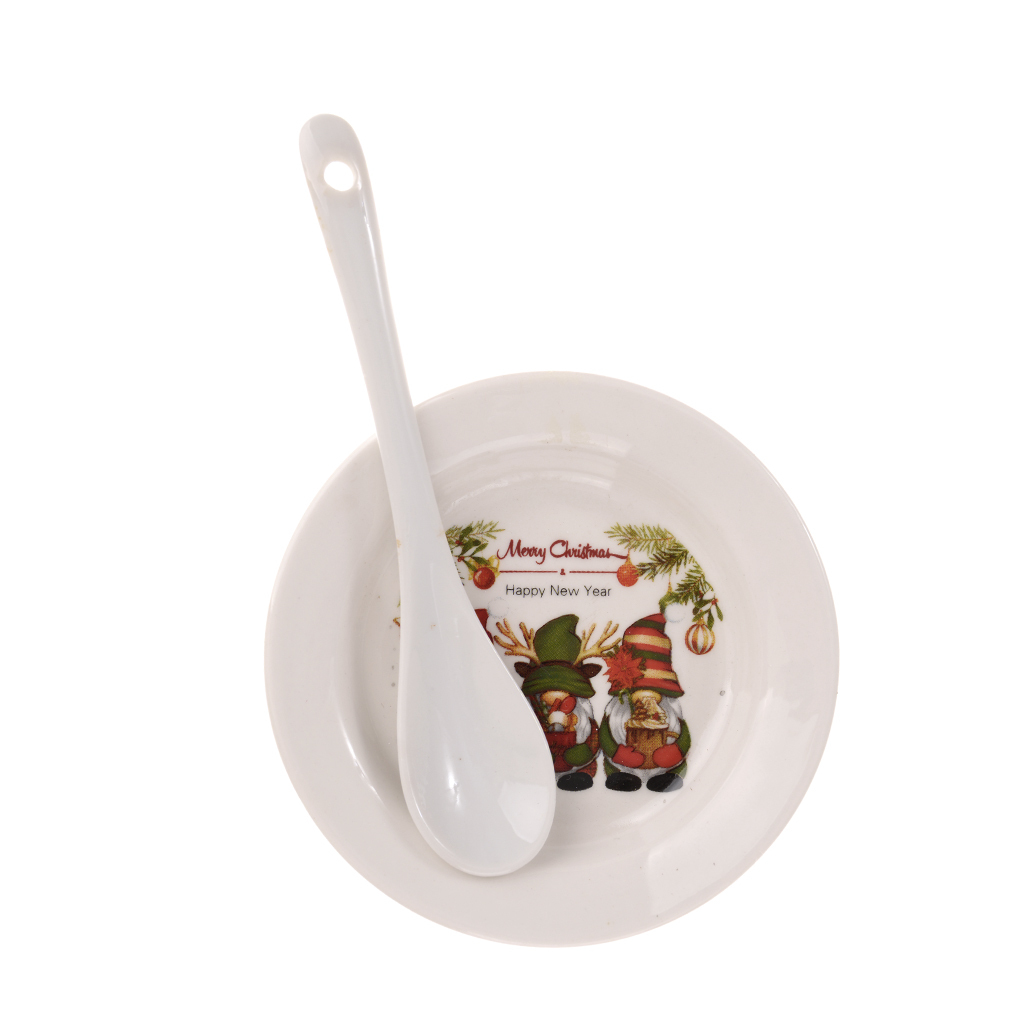 Керамичен комплект от коледни чаша, лъжичка и чинийка.