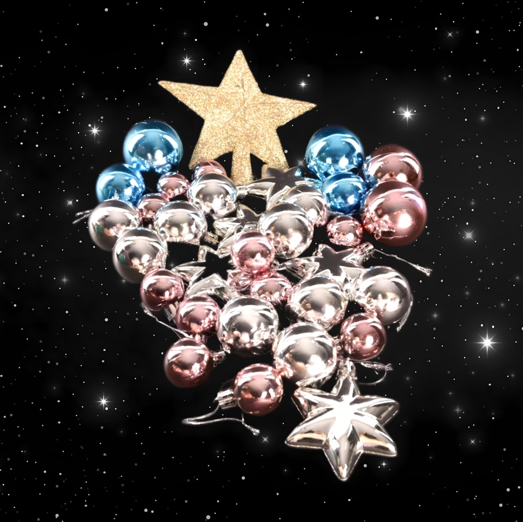 - 11 броя малки топки в цвят розово злато - 2 см. диаметър;