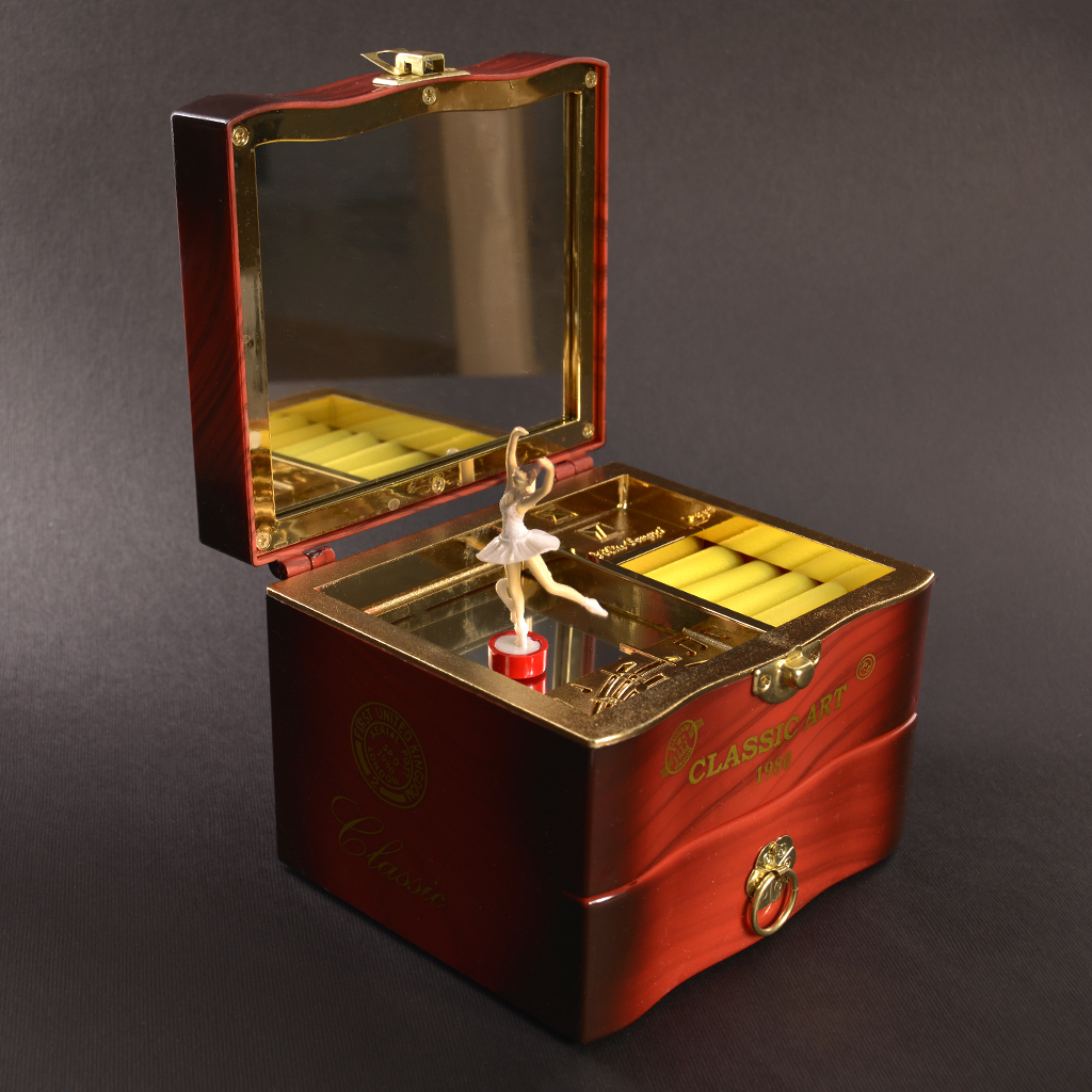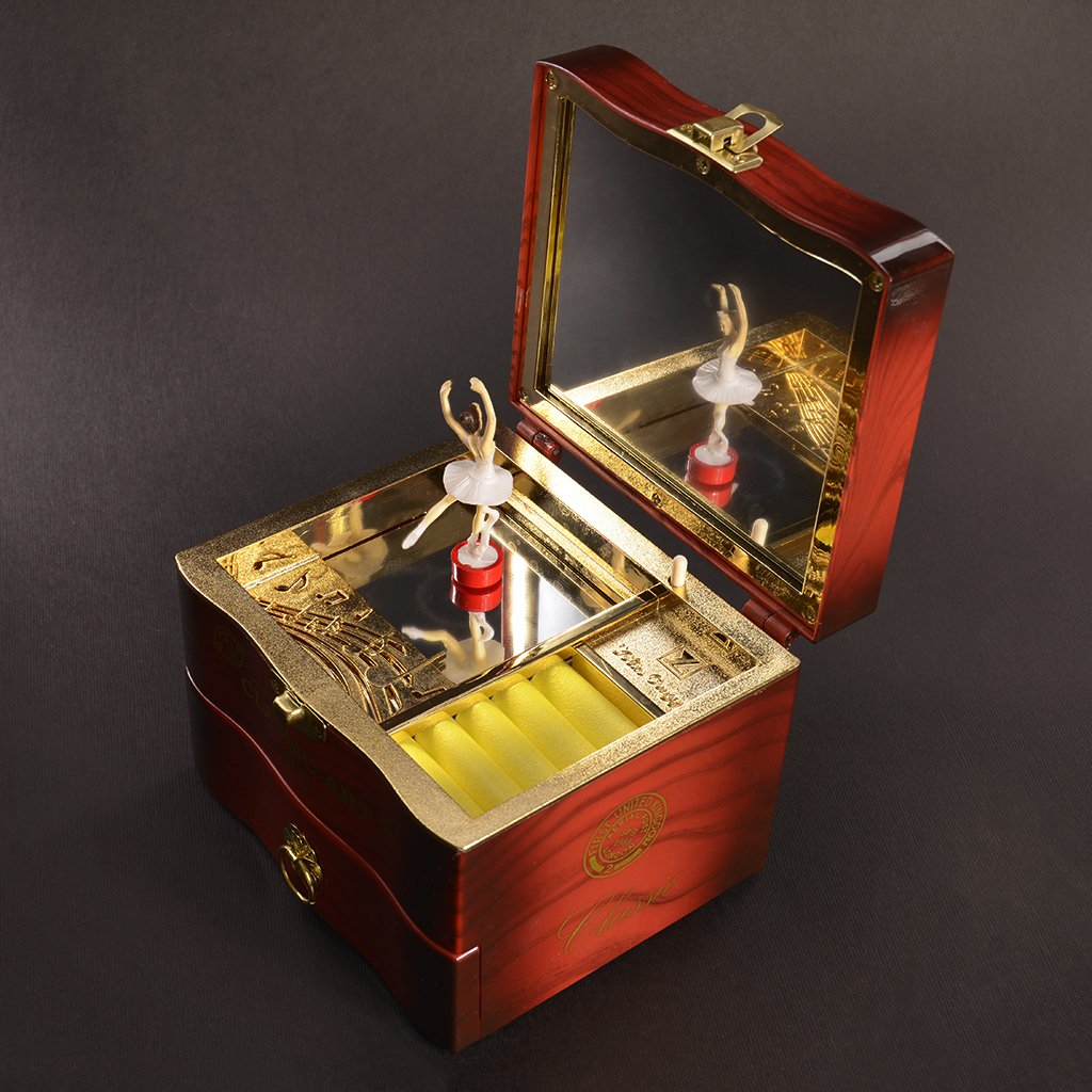 При отваряне и пускане на механизма, балерината започва да се върти под звуците на мелодията.